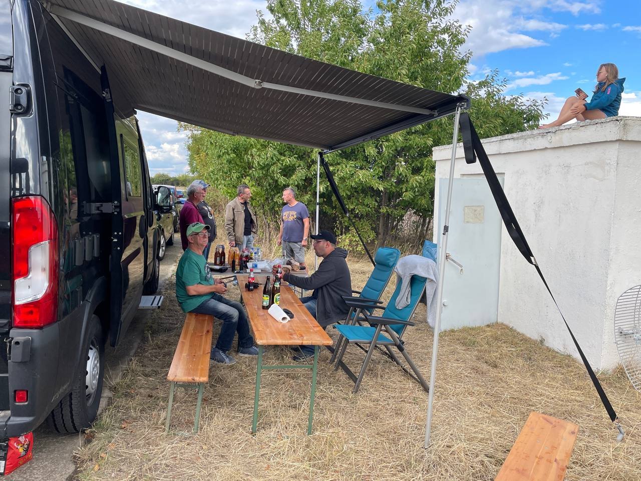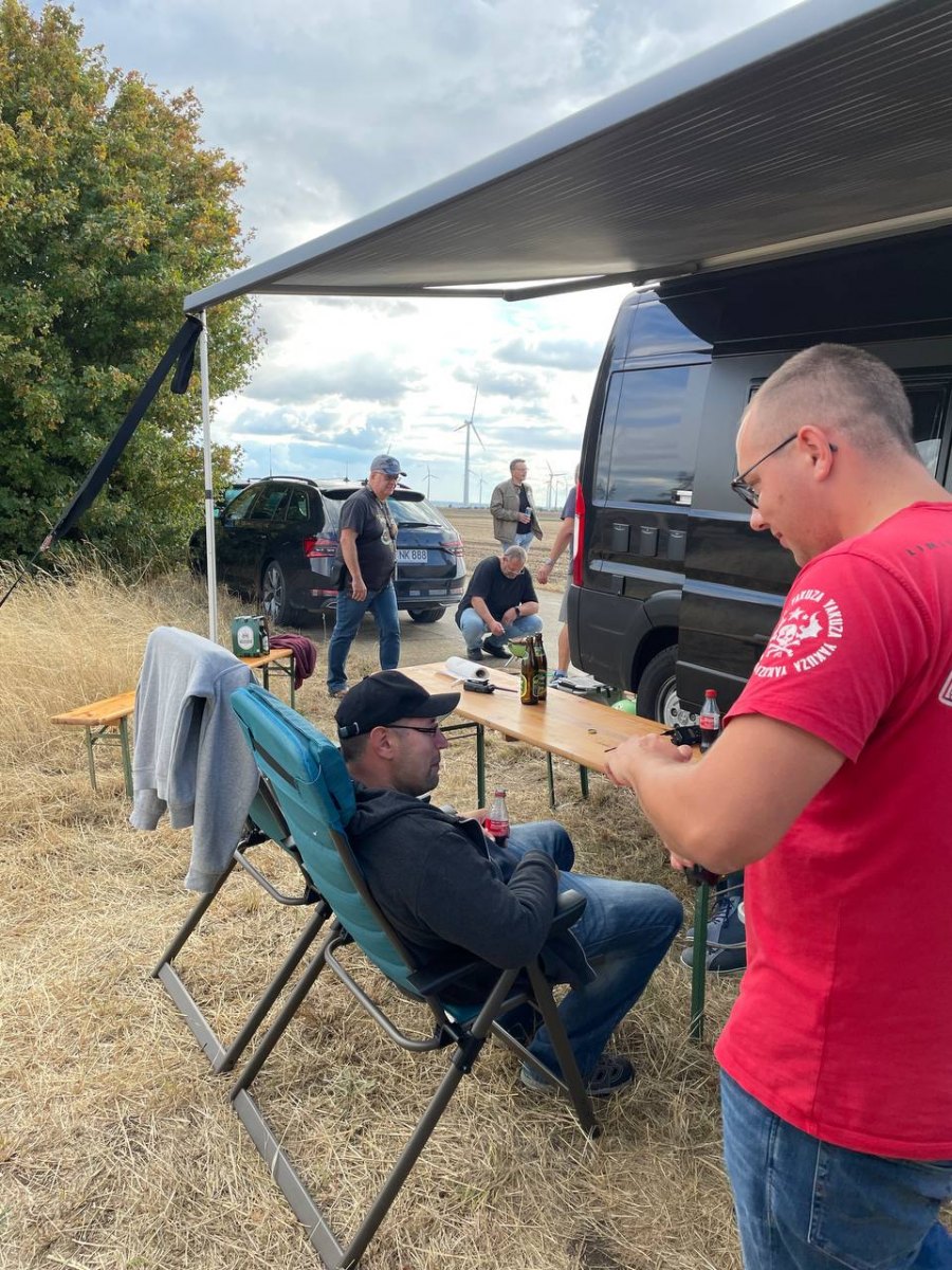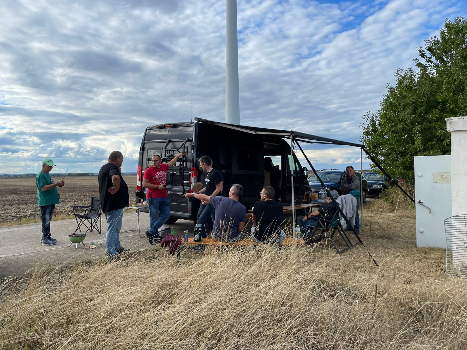 Nachdem wir nun ganz viel gebaut haben wollten wir auch mal zum Relais fahren, um etwas Anderes zu machen 😉 So kam die Idee eines kleinen Relaisfestes, quasi als unsere eigene kleine Belohnung. Kurzerhand wurde ein Termin festgelegt, der 10. September sollte es werden. Trotz wenig „Werbung“ dafür haben sich doch einige Leute auf den Weg gemacht, um sich mal wieder persönlich zu sehen und natürlich auch die Umbauten des Relais anzuschauen. Wir waren eine tolle Runde und so ist die Zeit wie im Fluge vergangen. Am späten Abend wurde DB0SLK sogar noch farbig angestrahlt. Gerrit, das war ne tolle Idee von dir! Leider hat das vor lauter Erzählen niemand fotografisch festgehalten, oder?!?